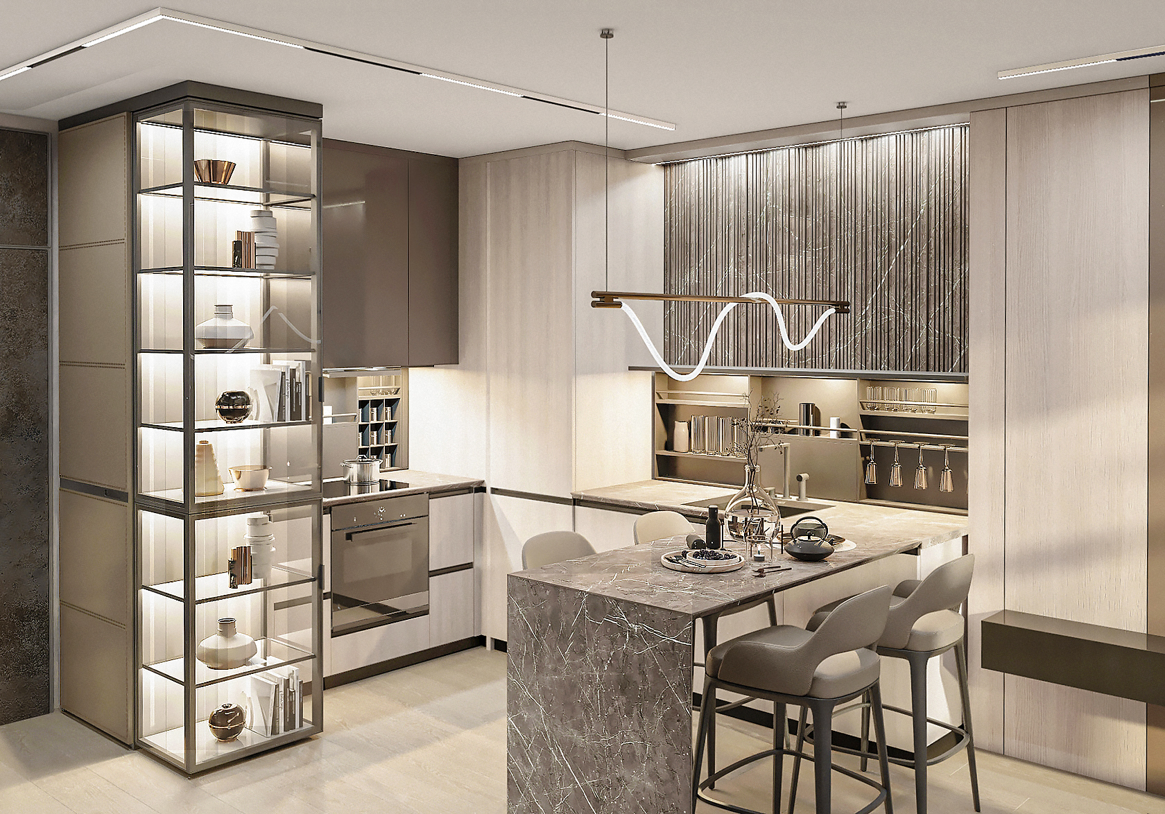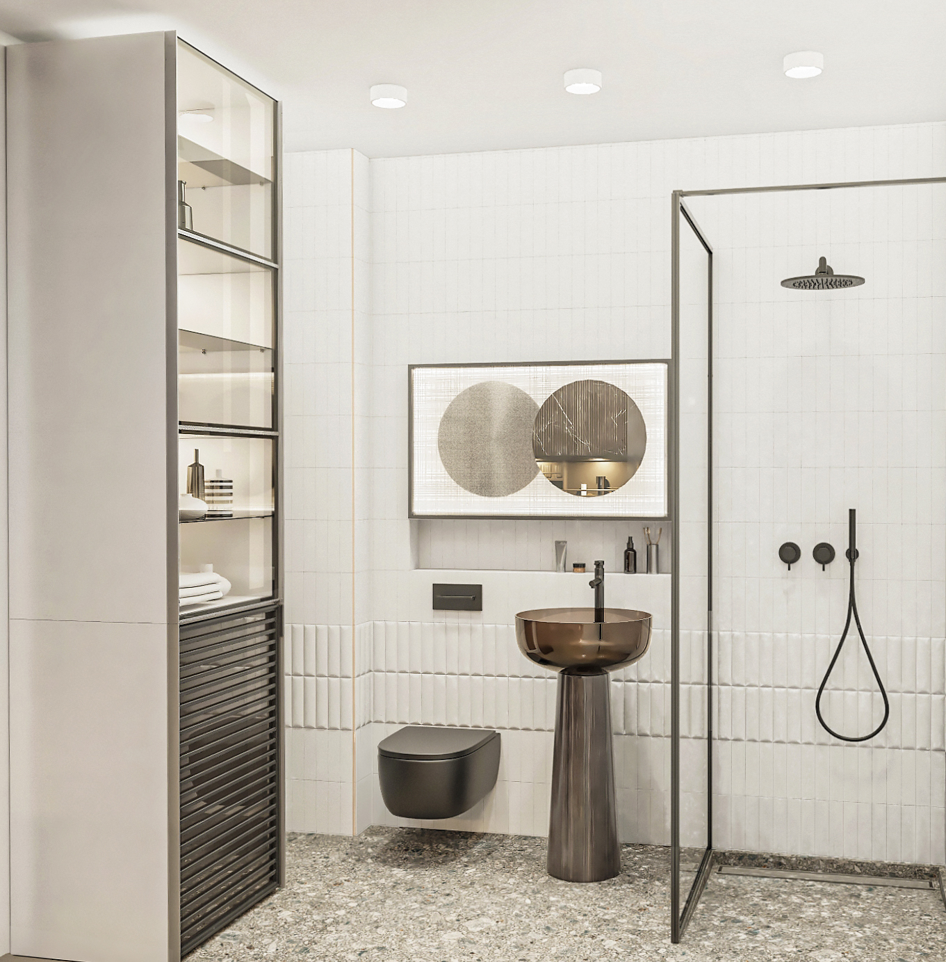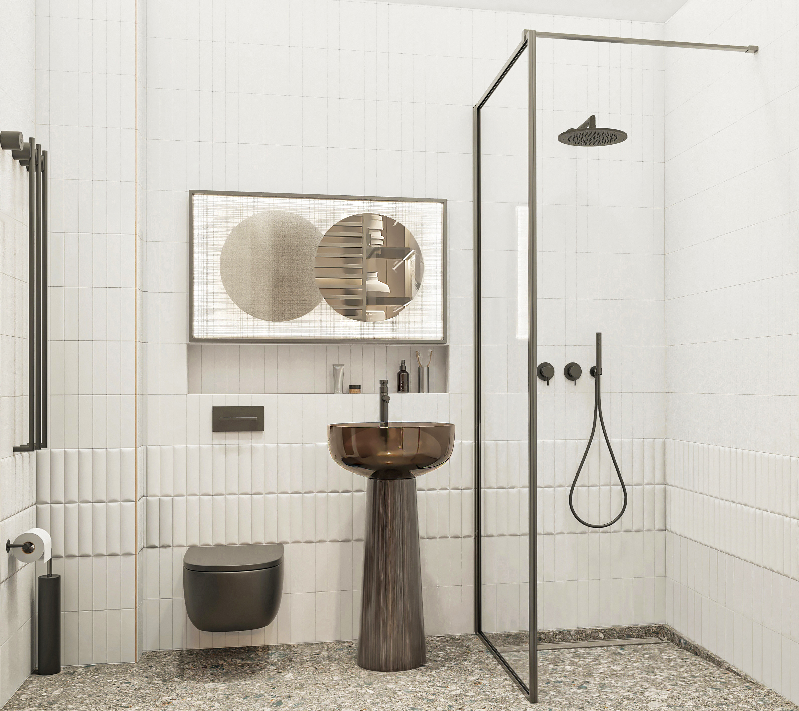 We created an individually designed mirror with a 3D effect and backlight for the bathroom.