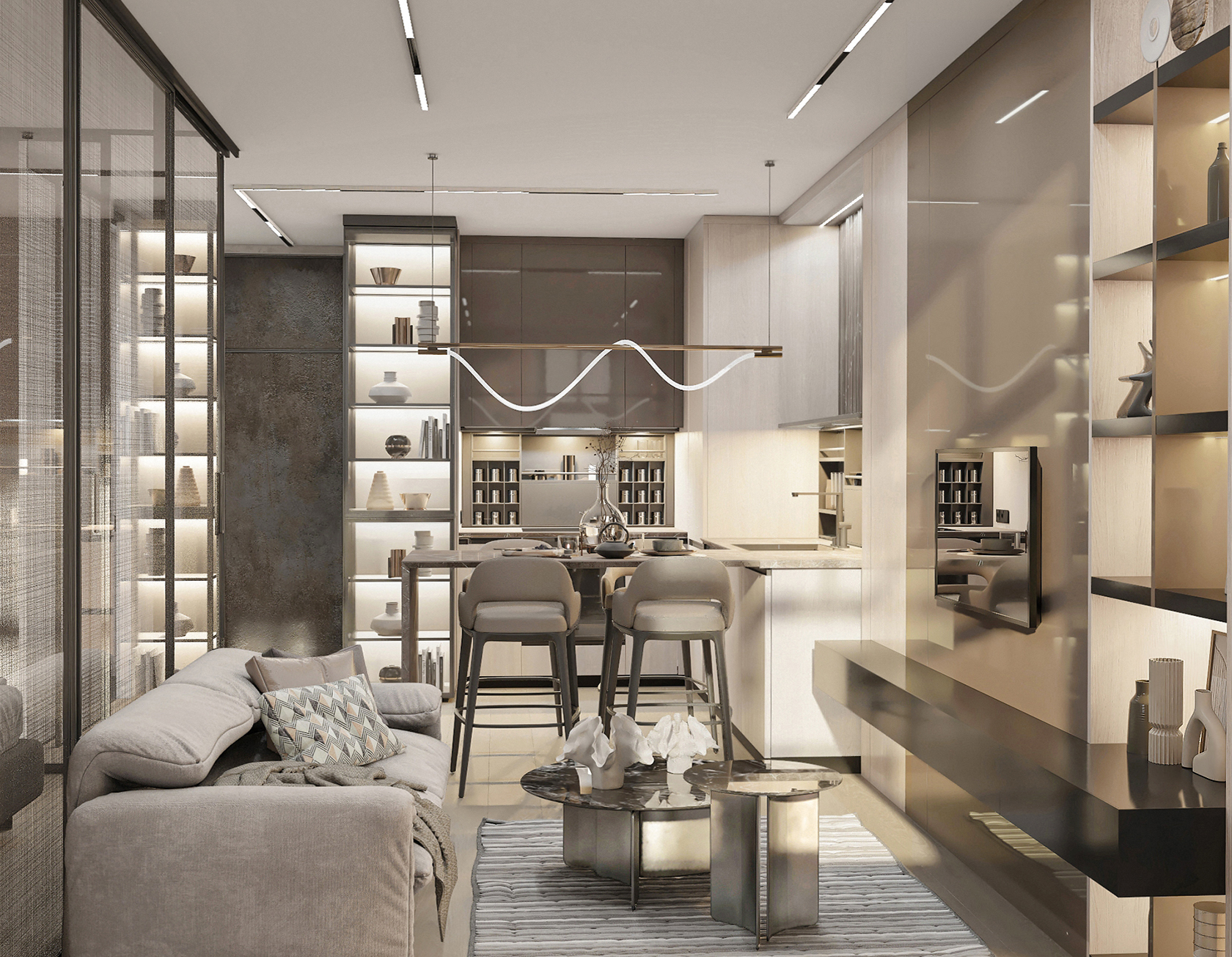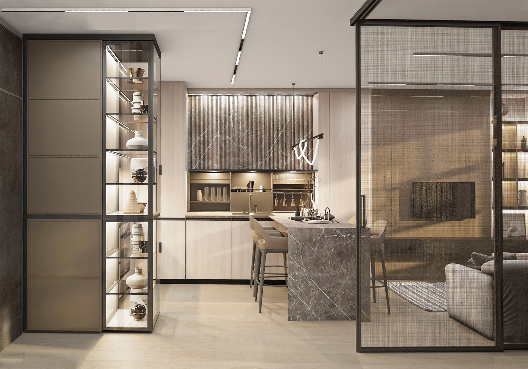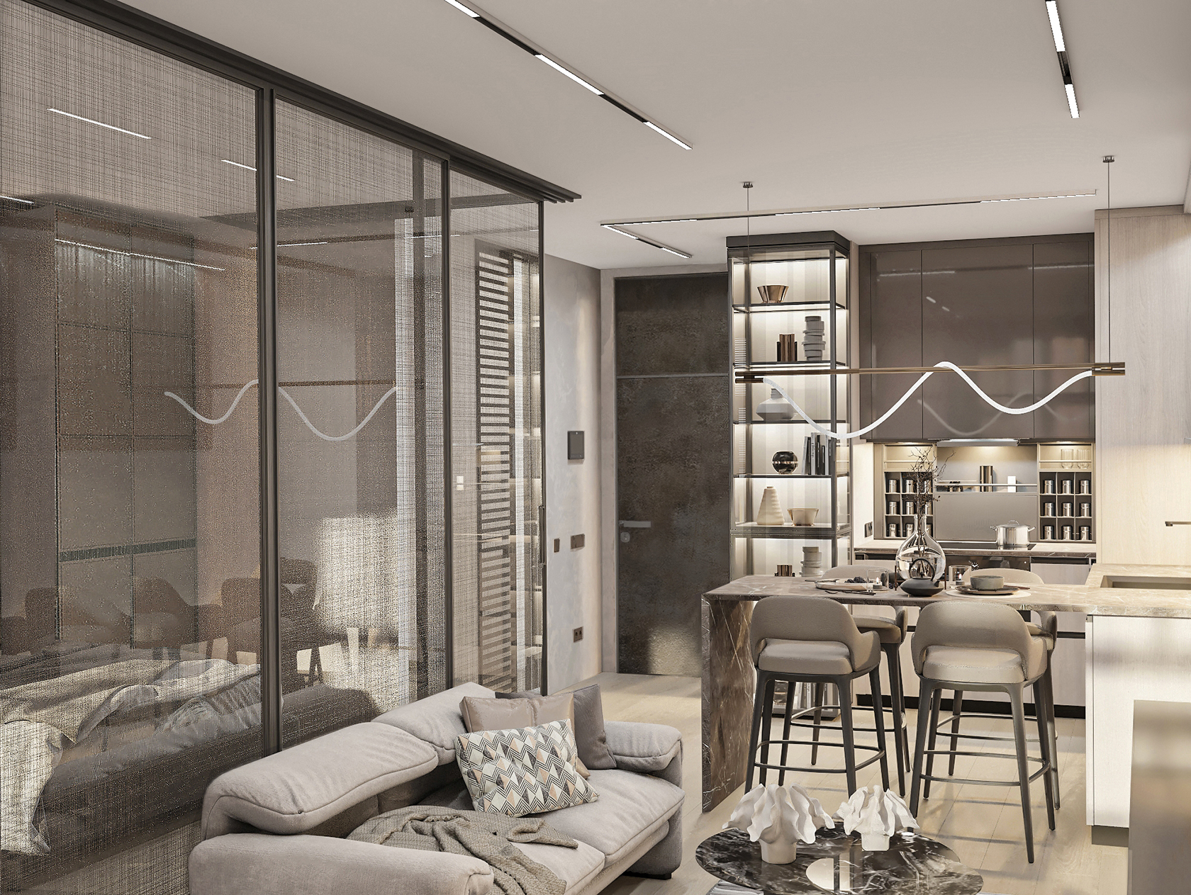 We created an individually designed mirror with a 3D effect and backlight for the bathroom.