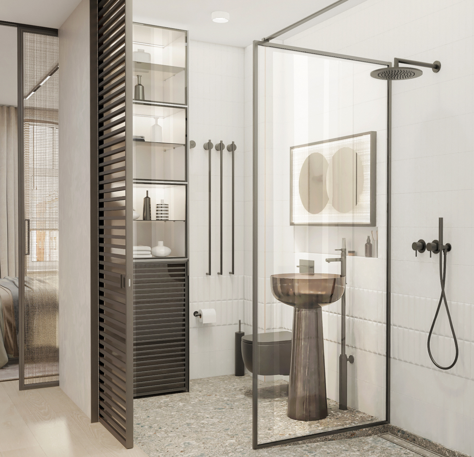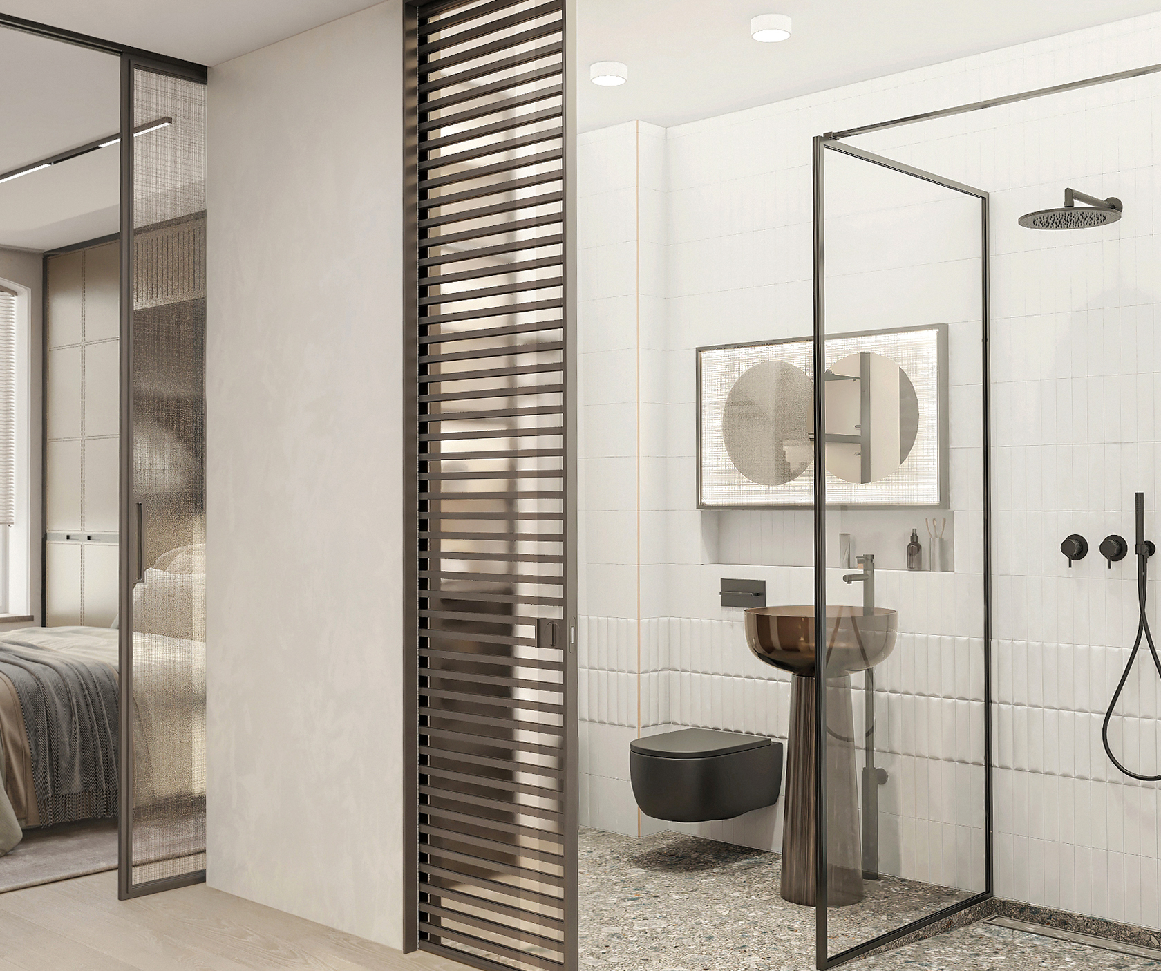 Glass sliding door to the bathroom - brand RIMADESIO, model EVEN (Italy)
