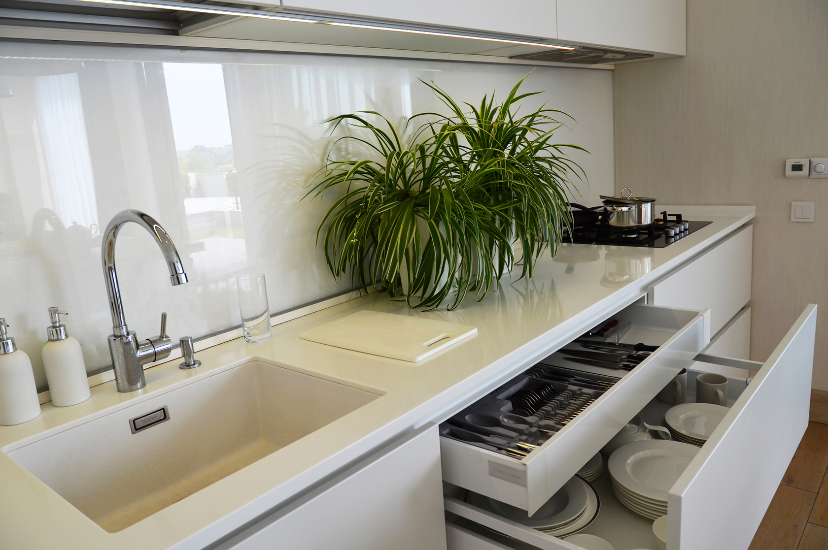 Szafka podumywalkowa z 3 sekcjami z drewnianym blatem - producent MODULNOVA (Italy)