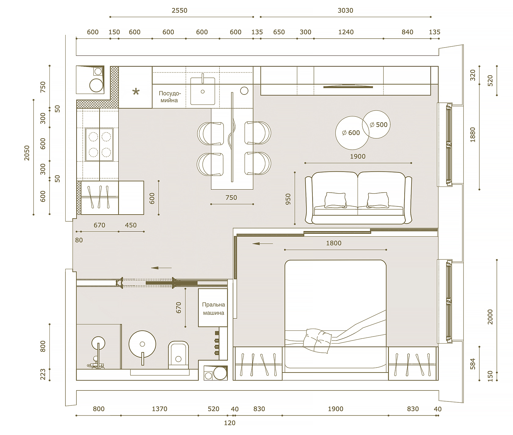 Для ванної кімнати ми розробили індивідуальне дзеркало з 3D ефектом і підсвічуванням.